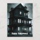 This multi-story haunted house appears in our nightmare, courtesy of Halloween season! The image, in black and white, brings an overwhelming sense of dread, from the creepy house shrouded in fog, to the full moon shining in the night sky, to lights shining on all floors - except for the attic. The text, "Happy Halloween!" is customisable, or delete it for just the spooky scene. Let's stay out of that attic, okay? (A.I. generated)