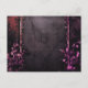 At the heart of the design, wrought iron elements entwine with gothic purple roses, flowers, greenery, and vines. These intricate details bring an air of mystery and dark allure to the postcard. The gothic purple roses add a touch of opulence, symbolising both love and the enigmatic nature of the night.