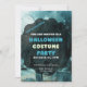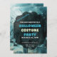 At its core, the invitation boasts a sleek, partially see-through grey bumpy bubble that serves as the backdrop for your event details. Centred and prominent, the words "Halloween Costume Party" make a dramatic statement in vibrant blue and lime green bubble letters, adding a playful and modern touch. The hosted by information also follows suit in matching blue, creating a cohesive and captivating design. The remaining text is elegantly presented in light grey, ensuring readability and clarity.