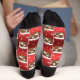 It wouldn't be the holidays without fruitcake! These funny Christmas fruitcakes have creepy faces and a red gradient background colour. Dress up for a holiday party with this silly dessert pattern on custom socks for women and men. Fun to wear throughout the entire holiday season! Check out my store Foxxy Tees for the green version!