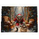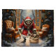 Creepy Christmas Goblin – Dark Fantasy Evil Santa Horror Art. A sinister goblin dressed as Santa Claus brings a dark twist to the holiday season. With glowing red eyes, a menacing grin, and a sack full of smaller creepy goblins, he stands in a snowy, festively decorated room. Snow-covered trees, glowing lanterns, and two chairs add to the unsettling Christmas atmosphere. Perfect for fans of horror, dark fantasy, and alternative holiday designs.