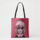 Add a macabre touch to your day with this tote bag. It features a frightening illustration of a zombie girl in pink, black and red set against a red background. The horror style image is perfect for fans of zombies and scary movies. The reverse side of the back has a coordinating red and pink design.