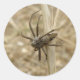This beautiful sheet of round stickers features a detailed photograph of a garden spider crawling up a blade of seeding grass. The beautiful detail in this photograph gives a sense of scale.