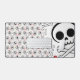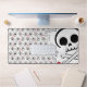 This XXL mouse pad features a playful and whimsical design perfect for adding a touch of personality to your desk. The repeating pattern of cute, cartoon skulls and crossbones, accented with scattered red hearts and small flowers, creates a unique "spooky-cute" aesthetic.