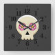 Creepy Cute Kawaii Goth Skull with Flowers Square Wall Clock