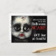 A creepy, eerie gothic doll haunts this frightening Halloween post card party invitation with her large piercing eyes and bloody pin pricks on her forehead. It grabs your guests interest as soon as they open their mail and gets them in the mood for an evening of ghoulish celebration. Distressed type face spells out the details in coordinating bloody red and white text over the dark and dreary black background. Printed on affordable post card stock, you save money on postage. Personalise the text with your party details.