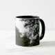 This beautiful mug features a photograph taken from within a dense forest. The photograph shows the darkness of the trees and a small area of grey sky. The result is an eerie and atmospheric scene. The design is shown on a black and white ringer style coffee mug, but is also available on several other styles and colours of mugs.