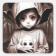 Creepy Girl Big Eyed Chibi Doll Square Sticker