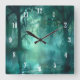 Creepy Green Swamp White Numbers Square Wall Clock