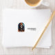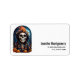 Address labels with an illustration of a skeleton wearing a hooded jacket with an orange witch's hat on top. Surrounded by cute and spooky pumpkins. A glowing moon in the back with a single bat flying nearby. Fun autumn Halloween design.