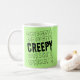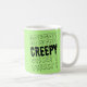 This mug is perfect for the Halloween lover. It says "Creepy" on both sides in a black font against a green base. Both font and base colours can be changed!