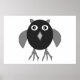 This poster features a creepy owl with huge bulging eyes and twisted claws. Its body is black and its wings, ears and claws and beak are grey. This creepy owl can hide unseen under the cover of darkness and is the stuff of nightmares.