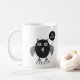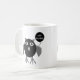 This stylish mug features a creepy owl with big scary eyes and sharp claws. Its body is black and its wings, ears and claws and beak are grey. The owl is holding a balloon with “happy Halloween” written on it and is ready to party.