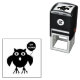 This awesome self inking stamp features a creepy owl with big scary eyes and sharp claws. Its body is black and its wings, ears and claws and beak are grey. The owl is holding a balloon with “happy Halloween” written on it and is ready to party.