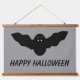 This awesome wood topped wall tapestry features a creepy vampire bat with evil red eyes and sharp white fangs. This fun design is perfect for Halloween and should amuse children and adults alike. There is custom text so you can include a message. The default message reads Happy Halloween.