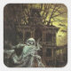 Creepy Pumpkin Halloween Sticker. It features vintage illustration of scary orange pumpkin with black cats. Perfect for your Halloween celebration.