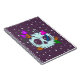 This creepy kawaii design features mushrooms growing out of a skull on a sparkly background.