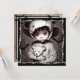 Creepy Halloween party invitations. Spooky little ethnic child ghost with big scary eyes holding super frightening dolls.