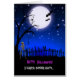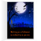 A walking dead skeleton standing near a hangman's noose in a grave yard with a full moon and dark blue sky background. Very fun and scary design for your Halloween greeting cards.
