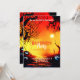 The word "Halloween" stands out in a dripping orange font, giving the design a bold, festive touch. The rest of the font is in a mix of orange and white, ensuring your party details are easy to read while matching the colourful and vivid theme. The back of the invitation mirrors the same captivating sunset scene, creating a seamless and polished look. This invitation sets the tone for a Halloween party that’s as bright, colourful, and fun as the design itself!