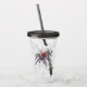 Fun classic acrylic tumbler featuring a creepy but cool gigantic spider and spider web pen and ink illustration. With a matching lid and straw!