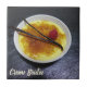 Creme brulee on slate with raspberry and vanilla dessert souvenir or gift for chefs and Crema Catalana lover.