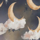Transform your space into a celestial dreamscape with this enchanting moon and clouds wallpaper. Golden crescent moons and soft clouds drift across a deep blue sky, creating a calming and magical atmosphere. This peel and stick wallpaper is easy to apply and remove, making it perfect for adding a touch of whimsical charm to any room.