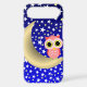 Cool and cute pink red owl on a crescent moon with a starry night background owl iPhone 4 Case Mate cases and gifts for owl lovers, bird lovers, birders and ornithologists!