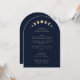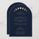Transform your dining experience with the "Crescent Moon Blue Arch Wedding Menu Card," set against a dark blue backdrop. The golden celestial elements, accompanied by the stylishly simple customisable initials, bring a touch of magic to your table settings. Moon phases delicately integrated into the design elevate the dining experience, symbolising the varied courses of your celestial celebration.