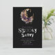 This Halloween party invitation sets the stage for a hauntingly stylish event, with its black background and eerie font that spell out "Spooky Party" in white and purple. The font resembles cut-out letters from a horror magazine, adding to the creepy vibe. At the centre of the invitation is a super creepy decorated skull, adorned with boho green and blush flowers and greenery, creating a macabre yet stylish focal point.