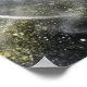 This picture depicts a crescent moon shining through a monochrome world with specks of gold shining through the universe.