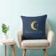 Embrace the beauty of the night sky with our Dark Navy Blue Throw Pillow. The captivating gold crescent moon and stars, set against the deep navy blue background, create an ambiance of celestial wonder. Personalise it with your names or any special words, and let this pillow be a symbol of your love and the magic of the celestial realm.