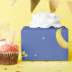 Yellow crescent moon with stars in repeat pattern, background colour is customisable currently set to blue