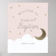 Crescent Moon Stars Pink Girl Baptism Welcome Sign