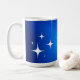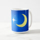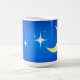 Crescent moon with stars on a rich gradient blue background coffee mug