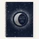 Spiral notebook with a silver crescent moon and stars design on a dark night blue background. Fully customisable text in a matching colour. Check out our store for more items from our ''Celestial Silver'' collection or for more personalised spiral notebook options.