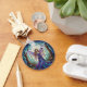 This fantasy keychain features a stained glass style illustration of a moonlit fairy in a flowing purple gown with iridescent wings, holding a staff amid enchanted forest and crescent moon.
