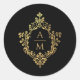 Crest Black Faux Gold Elegant Monogram 2 Initials Classic Round Sticker