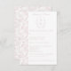 Blush pink Monogram Crest Wedding Invitation suite: RSVP card: Vintage-inspired line art monogram crest with elegant blush pink typography. Features a chinoiserie floral pattern of peonies for timeless sophistication.