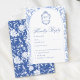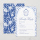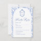 Crest Monogram Delft Blue Floral Script RSVP Card