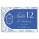 Delft blue floral table number card, designed in a refined blend of chinoiserie and French toile de Jouy style. The soft botanical illustrations frame an arched layout featuring an elegant wedding crest monogram, perfect for couples who love vintage, historic, and European-inspired aesthetics. Classic script typography pairs beautifully with the ceramic-blue palette, making this design an effortless nod to the tradition of “something blue.” Fully customizable with your names, wedding crest and table number, it’s an exquisite choice for any romantic or sophisticated wedding theme.
