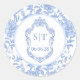 Crest Monogram Delft Blue Floral Wedding Classic Round Sticker
