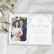 Dusty Blue Monogram Crest Wedding Save The Date: Vintage-inspired line art monogram crest with elegant pale blue typography. Features a chinoiserie floral pattern on the reverse for timeless sophistication. Elegant script font for a formal and classic style. Add your own photo (vertical) to fit in the white frame. Create your own wedding crest with the bride and grooms initials.