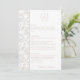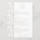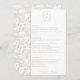 Pale Taupe Monogram Crest Wedding Menu Card: Vintage-inspired line art monogram crest with elegant typography. Features a chinoiserie floral pattern on the reverse and on the side for timeless sophistication. Enter the design tool option if adjustments are needed when your menu text is added.