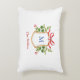 Decorate your home for the holidays with this Personalised watercolor crest with holiday greenery with Monogram in the centre accent throw pillow with cute red and white candy cane pattern in the back.