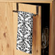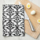 Cresta Damask Vertical Pattern Black on White Tea Towel