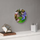 I needed a clock for my bathroom. Yes, my bathroom. So that it would "fit" and look right in the space, I needed something that was frameless, and contemporary. This clock has the water/nature/serene look I wanted. It looks great on my bathroom wall! The blue is well suited to resemble water and the beige matches the vanity. I decided to customize it with inspirational words....perfect! This was my first order, and now, I will certainly come back for future purchases. Very nice, the printing is beautiful and I'm pleased with it.