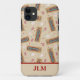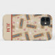 Add monogram initials or a name to create a personalised phone case that's perfect for cribbage fans. This phone case features a pattern of illustrations of cribbage game boards, playing cards, and game pegs in red, white, blue and tan set against a light tan background.