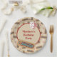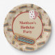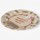 These personalised paper plates are perfect for throwing parties for anyone who loves to play cribbage and other board games. They feature illustrations of cribbage game board, playing cards, and game pegs set against a light tan background with your message spelled out in bold red lettering.