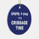 Shake a peg It's cribbage time is a humourous play on the phrase, Shake a leg, and will tickle the funny bone of your favourite cribbage player at birthdays and holidays.